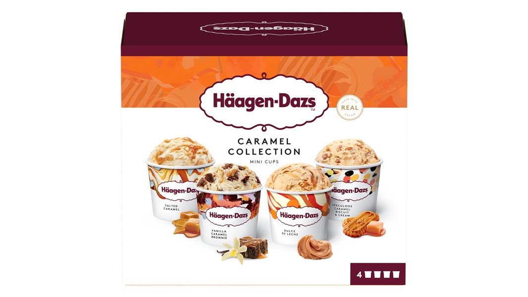 4 stk. mini flødeisbøtter venter på enhver karamelelsker. I denne pakke findes 4 forskellige slags flødeisbøtter: en flødeis med salt karamel, en flødeis med vanilje, karamel og brownie, en flødeis med Dulce de Leche og en flødeis med karamel, kiks og creme.