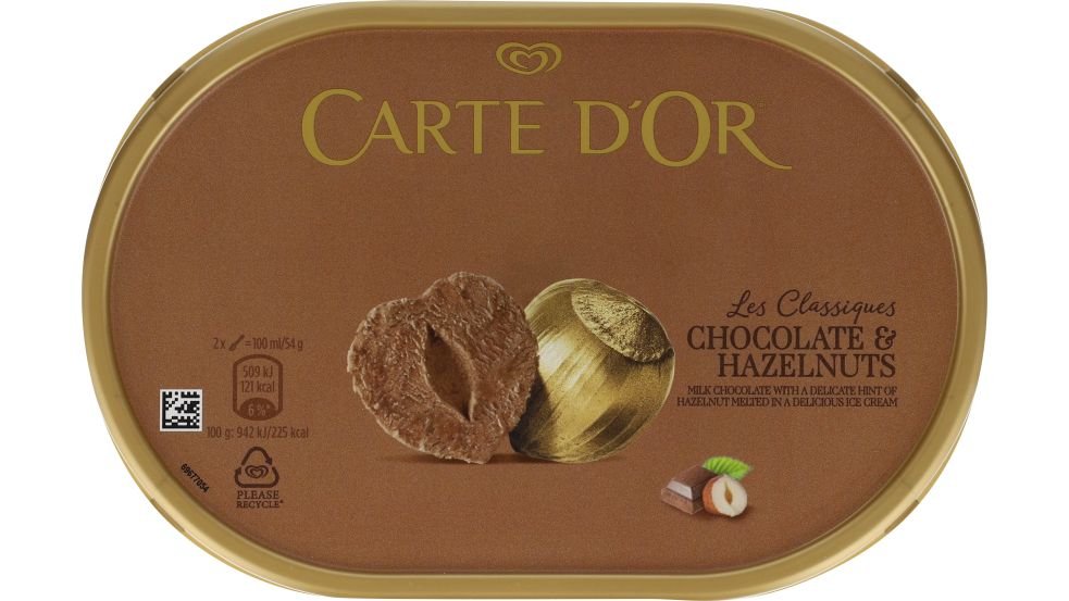 Carte d’Or er Danmarks mest kendte dessertis og produceres med kvalitets råvarer. De mange forskellige varianter passer uanset om du vil bruge isen som tilbehør eller servere den rene is som dessert Carte d’Or Praline er en dejlig is med chokolade og hasselnøddesmag med chokolade og hasselnøddesauce