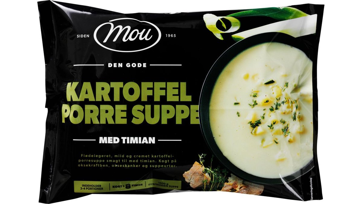Det bedste at varme sig på, når vinden for alvor rusker i træerne, må være en cremet og mættende Mou Kartoffel-porresuppe. Den fyldige suppe er som et varmt kram på en kølig gråvejrsdag, og smagen er, ligesom du kender den bedst, fra den klassiske kartoffelsuppe med porrer.