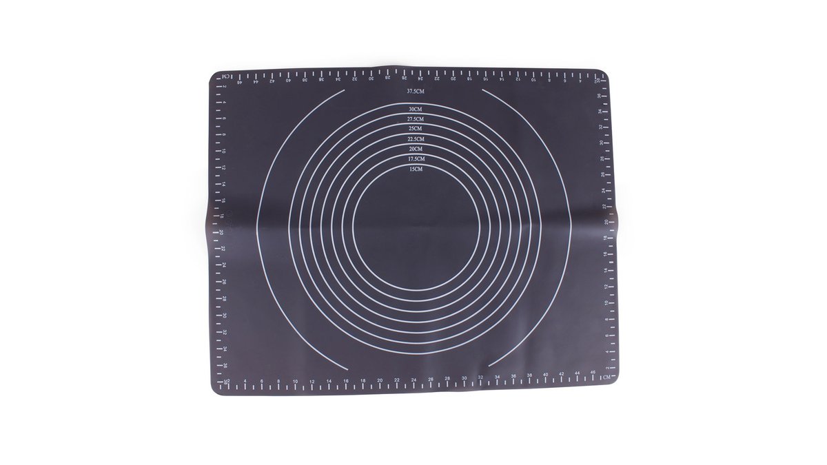 Praktisk bagemåtte med centimeterskala, der viser præcis hvor langt du har rullet dejen ud og hvor tykt du skærer hver kage. Også god til udrulning af pizzadej.