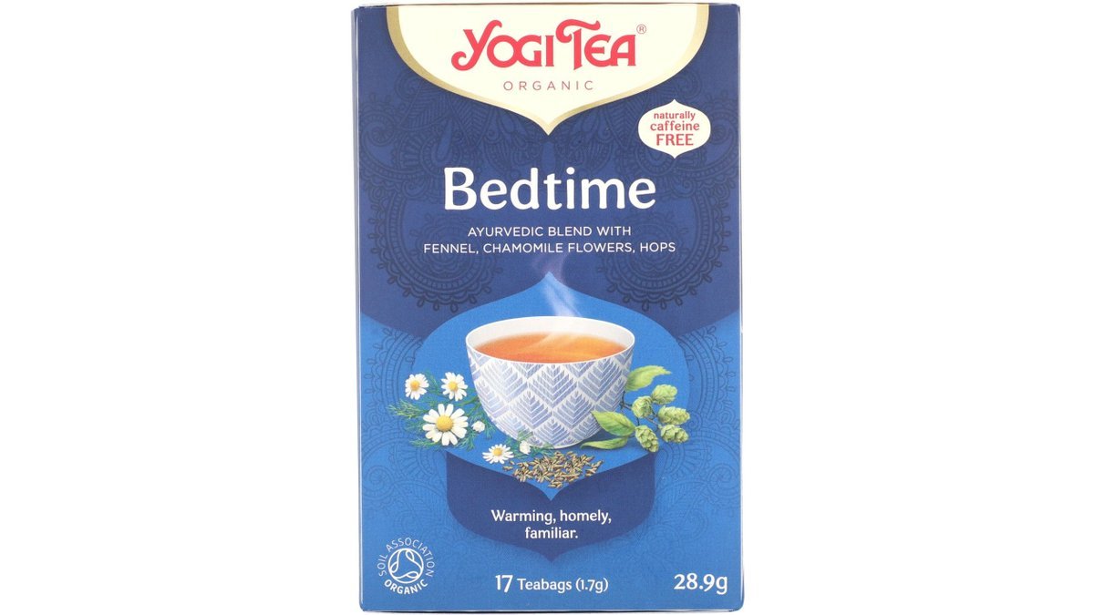 Økologisk Bedtime fra Yogi Tea er en skøn urtete med fennikel, kamille blomster og humle.