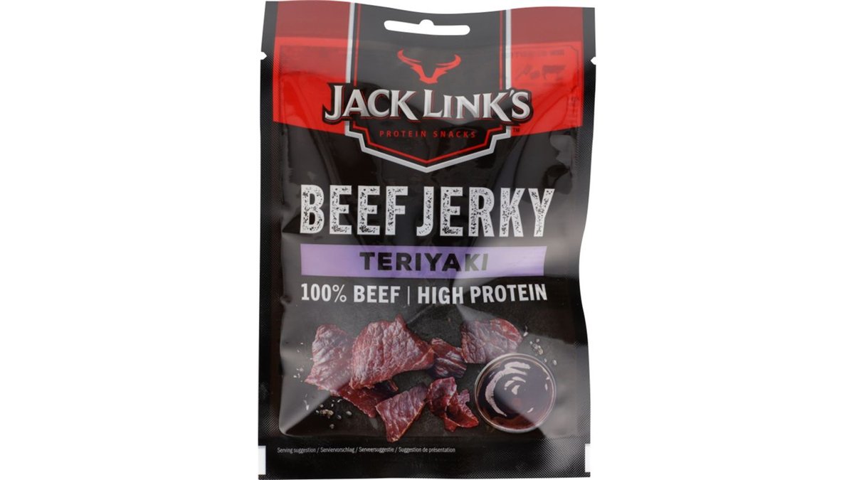 Jack Link’s Beef Jerky Teriyaki er en lækker og proteinrig snack fremstillet efter amerikansk tradition. Beef Jerky er tynde skiver af magert oksekød, som er marineret med forskellige krydderier og derefter røges og tørres kødet. Beef Jerky er en perfekt snack til fx sport, fitness, udendørsaktiviteter eller en pause i arbejdet.