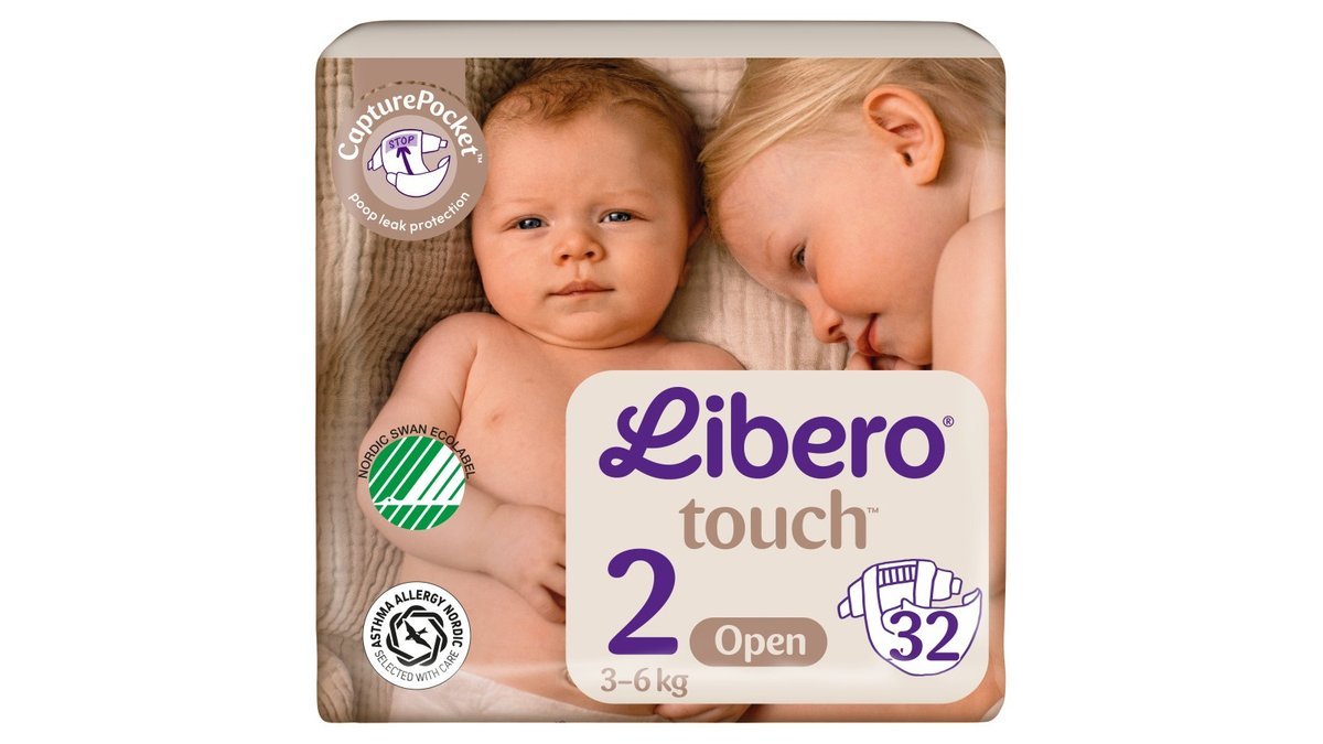Liberos blødeste og bedste åbne ble. Hudvenlig, åndbar og dermatologisk testet. Med CapturePocket™ i ryggen samt vådindikator kan du forhindre snavset og ubehagelig lækage. Soft seals – superblød, elastisk pasform og komplet sikkerhed for små ben. Suveræn lækagesikkerhed i op til 12 timer med superabsorberende kanaler i kernen. Anbefales af Asthma Allergy Nordic og er certificeret af Svanen.