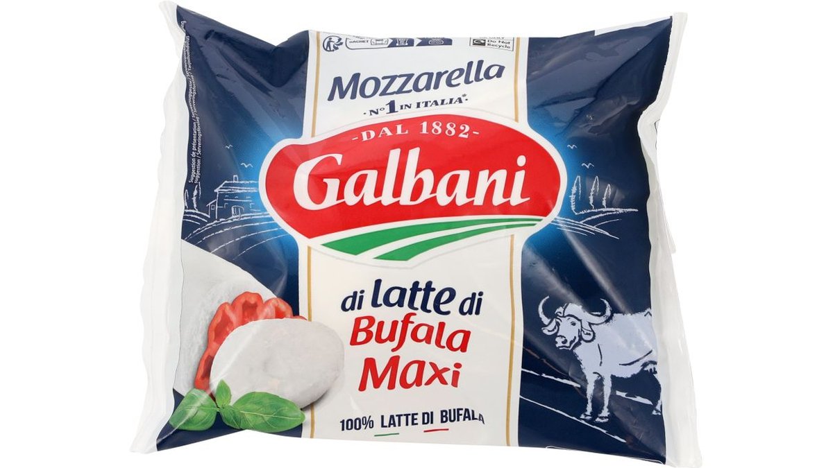 Galbani Mozzarella Bufala Maxi er en mozzarella lavet på 100% bøffelmælk. Osten kommer i en cylinderform, som gør den nem at skære i flotte skiver. Oprindeligt fremstillede man udelukkende mozzarella af bøffelmælk. Denne mælk har en lidt mere fyldig smag og mere gullig farve end komælk. Det ser og smager man også på denne bøffelmælksmozzarella. Sammenlignet med komælksvarianten er en bøffelmozzarella lidt mere løs og cremet i konsistensen, og den er knap så udflydende i smeltet form. Brug den i en capresesalat eller som gratinering på varme retter som lasagne og pizza.
