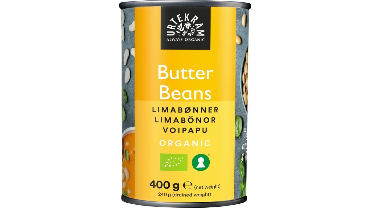 Urtekram har klaret iblødsætning og kogning for dig – og kun tilsat en smule havsalt. Klar til brug, nemmere kan det ikke blive. Økologiske butter beans har en blød, cremet smag og et højt protein- og fiberindhold. Brug dem f.eks. i sammenkogte retter og salater.