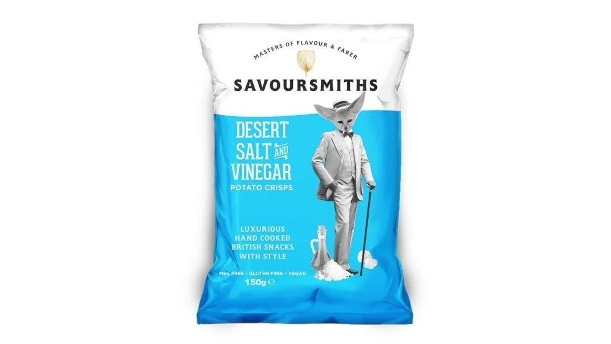 Kartoffelchips m. Desert Salt & Vinegar. Skrællen bevares for at øge ernærningsindholdet.
