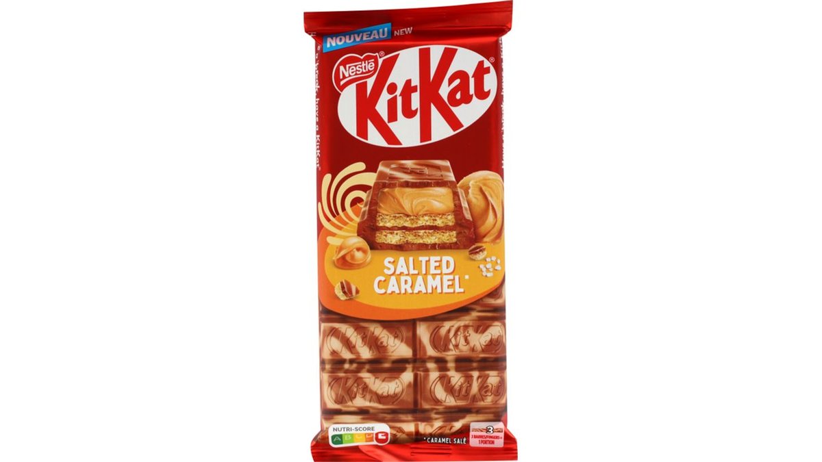 KitKat Pladechokolade med Salted Caramel er en lækker pladechokolade – der ser lige så godt ud som den smager! Den karakterisktiske sprøde KitKat vaffel er toppet med nyt lækkert fyld og derefter dækket af flotte hvirvler af smuk marmoreret chokolade. KitKat Pladechokolade er opdelt i letbrækkelige stykker, så du nemt kan dele den med venner og familie eller nyde et hurtigt øjeblik for dig selv. Have a break, have a KitKat.