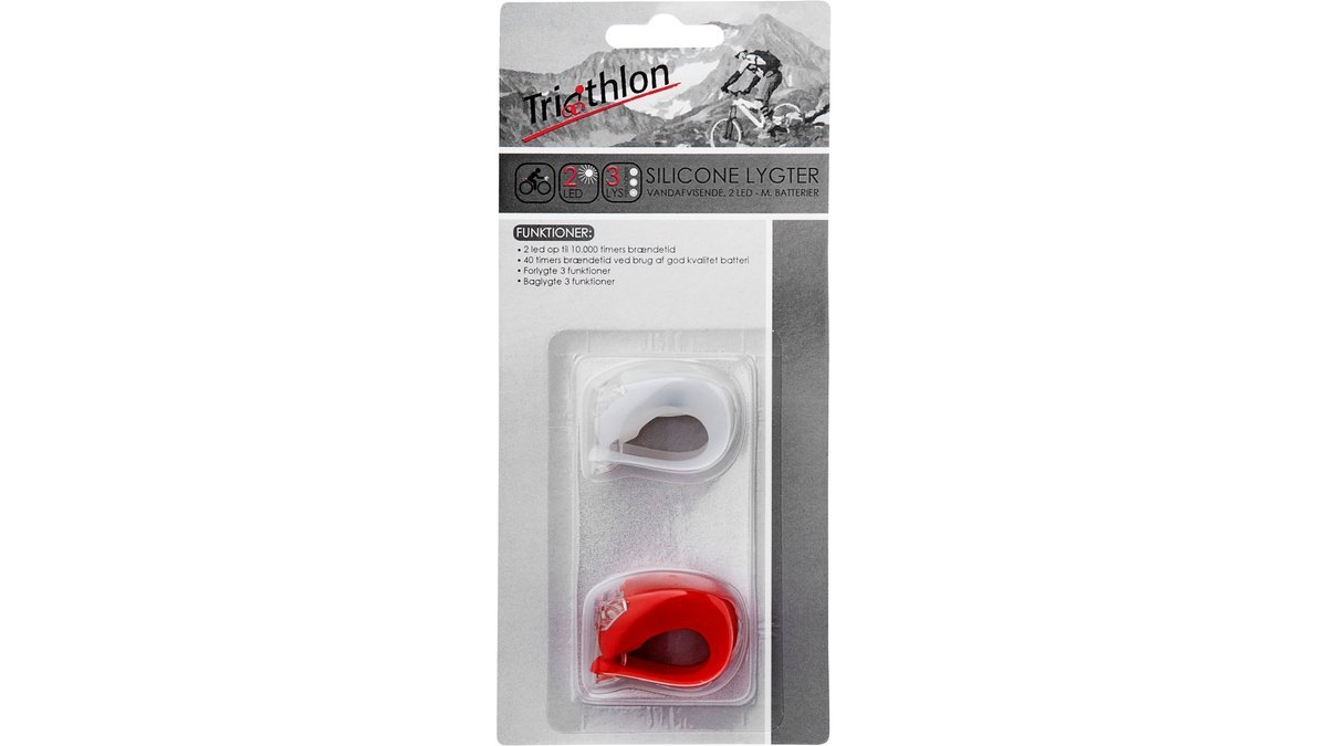 1 pakke af 2 stk. cykellygter til foran og bagved på cyklen. Vandafvisende.