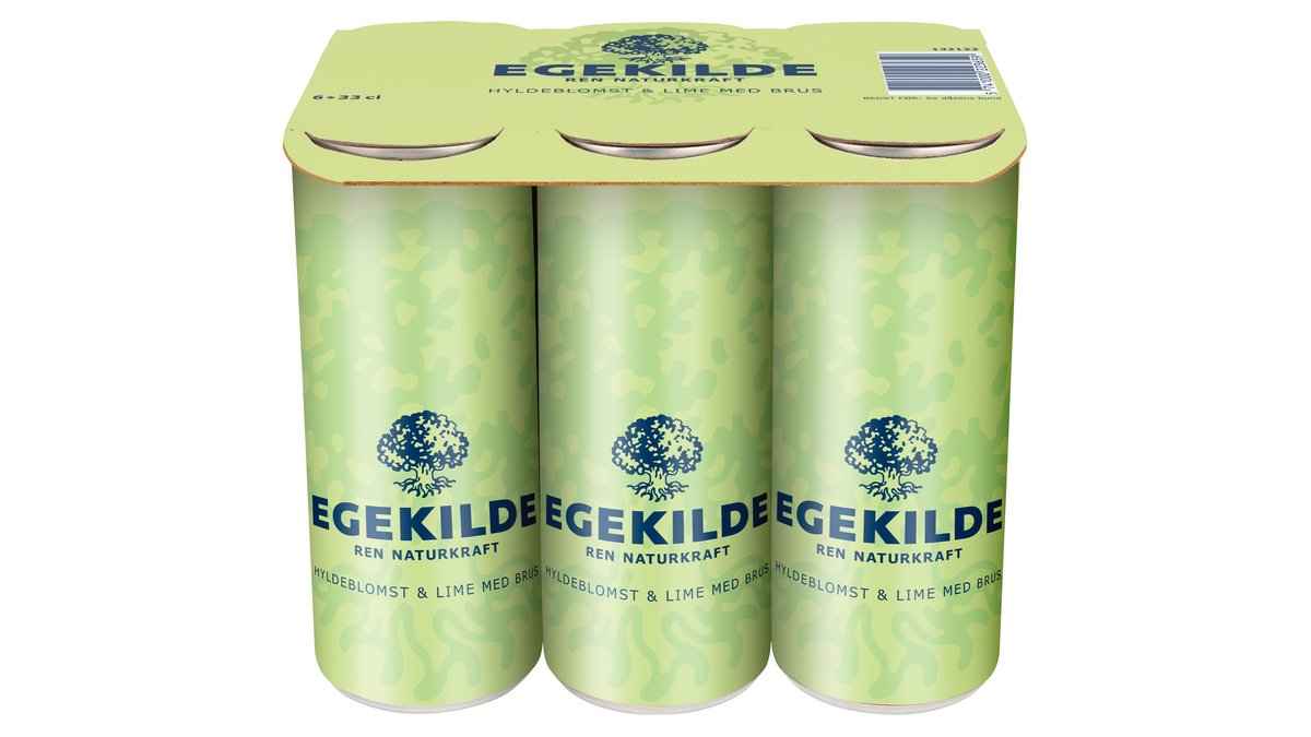 6 X 33 cl. Egekilde hyldeblomst & lime med brus har en mild smag af hyldeblomst og et forfriskende strejf af lime.