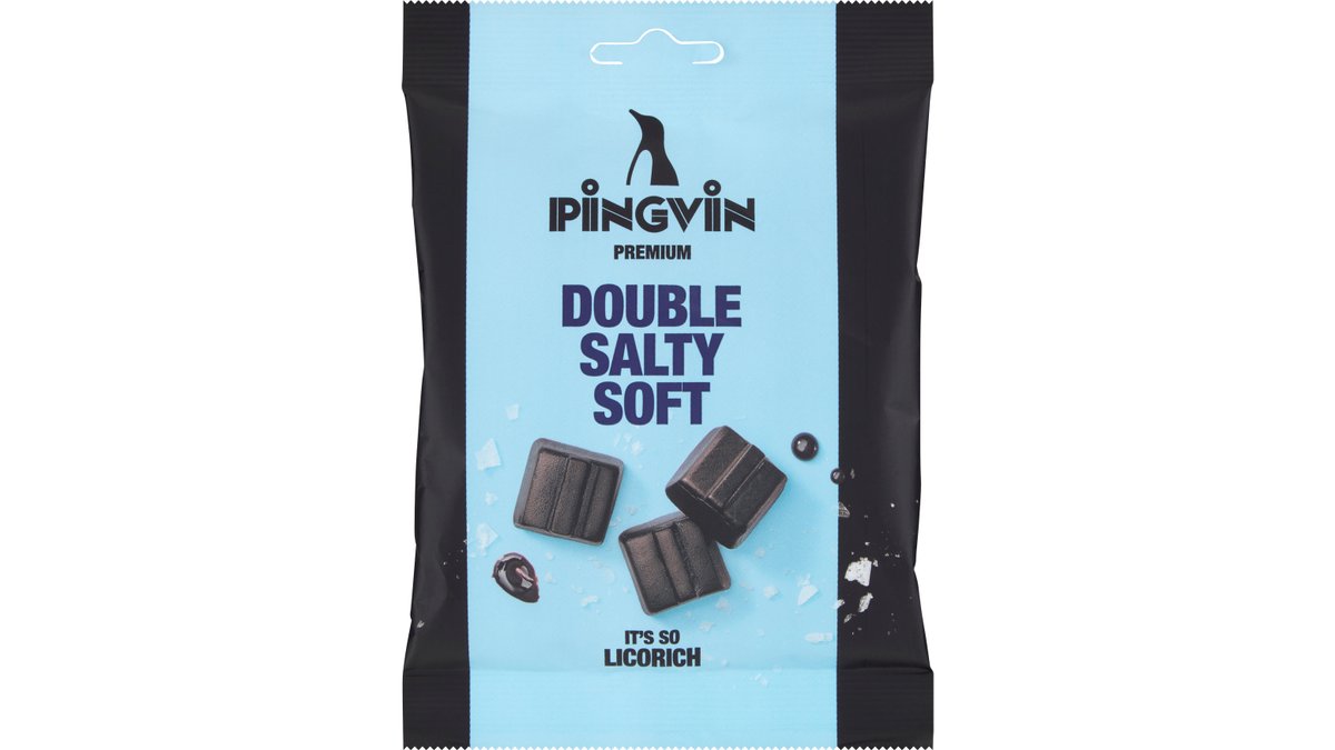 Pingvin Premium Double Salty Soft, er en lækker og fyldig saltlakrids med en krystaliseret overflade.