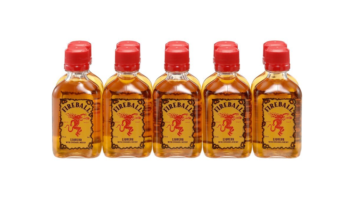10 x 50 ml Fireball Whisky likør er som en sprængladning af smag, der tager din mund med storm! Med sin intense kanonkuglevarme og krydrede kanelnoter er Fireball ikke for tøsedrenge eller skravl – det er for dem, der tør at tage en tår og sige”Bring it on!”Uanset om du nakker den straight eller mixer den i en smagfuld cocktail, er Fireball Whisky likør altid klar til at tænde op under festen.