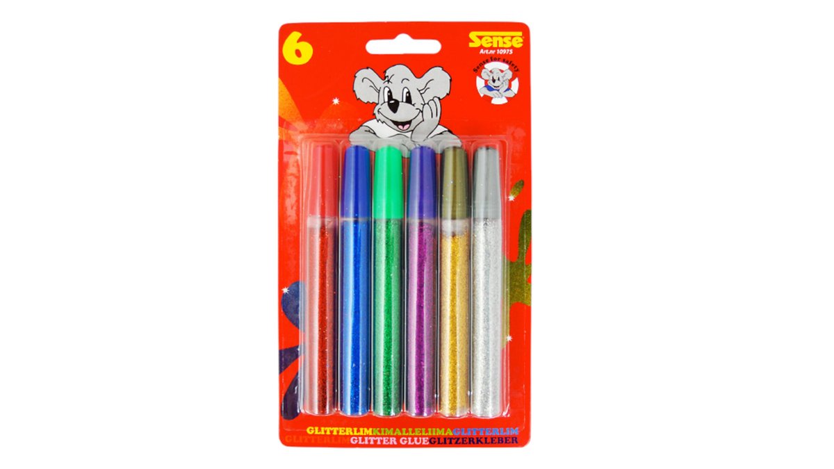 Giv julens kreative projekter et glitrende pift med glitterlim fra Sense. Pakken indeholder 6 farverige tubes – perfekt til julekort, pynt og hyggelige DIY-stunder.