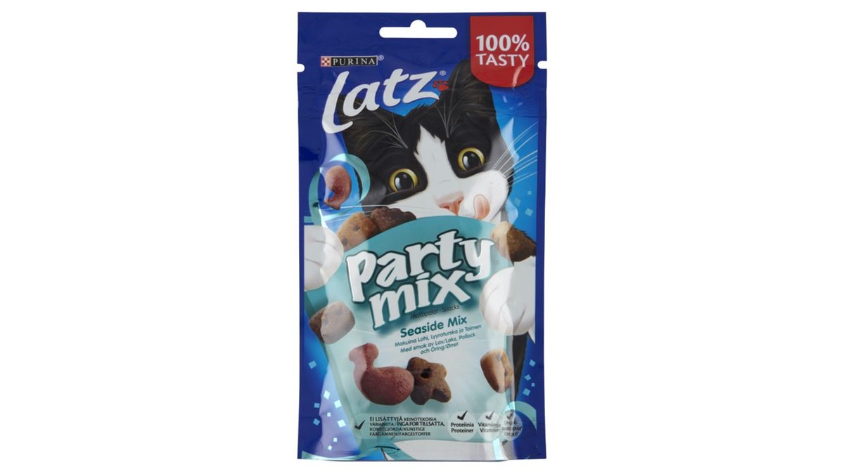 Del mere kærlige, travle øjeblikke med din kat. LATZ Party Mix Snacks – indeholder en uimodståelig, farverig blanding af godbidder, der er fulde af lokkende aromaer, udsøgte smag og en behagelig tekstur. Men det er ikke alt! Hver Latz Party Mix taske indeholder proteiner, vitaminer og omega 6 fedtsyrer og ingen tilsatte kunstige farvestoffer. Alt for at hjælpe din kat til at leve et sundt og godt liv. LATZ Party Mix fås i et bredt udvalg af smagsvarianter til din kat. Så nyd disse spændende varianter i dag! En uimodståelig, farverig blanding af godbidder! Få flere dejlige øjeblikke med din lille gavtyv!