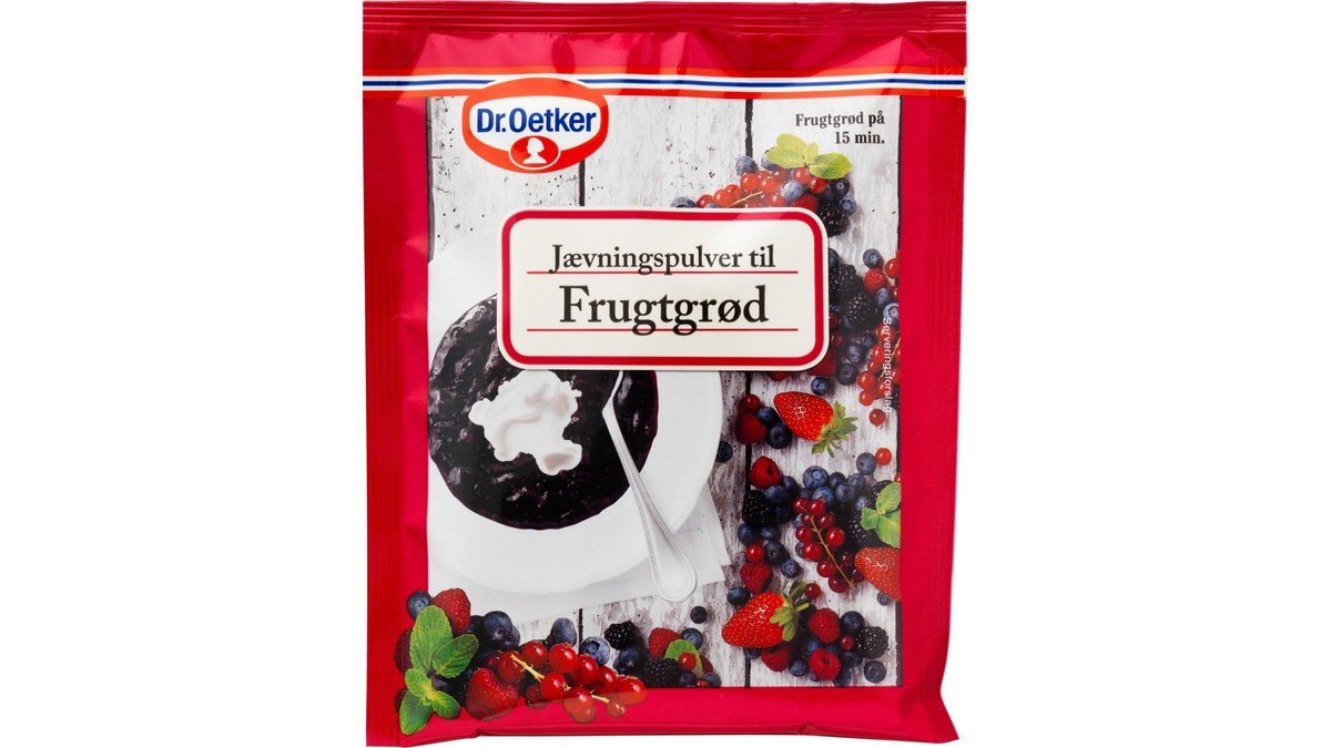 Dr. Oetker Jævningspulver til Frugtgrød kan anvendes til frugtgrød lavet af siet saft eller til almindelig frugtgrød. Fremgangsmåden står på bagsiden af emballagen.