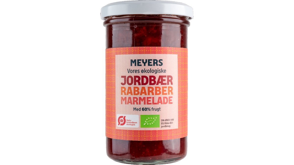 Vores økologiske jordbær-rabarbermarmelade, med jordbær af den smagfulde sort Senga Sengana. Marmeladen er oplagt at spise på det gode brød, i lagkager, på pandekager, i sommerens vaniljeis eller som tilbehør til vinterens æbleskiver.