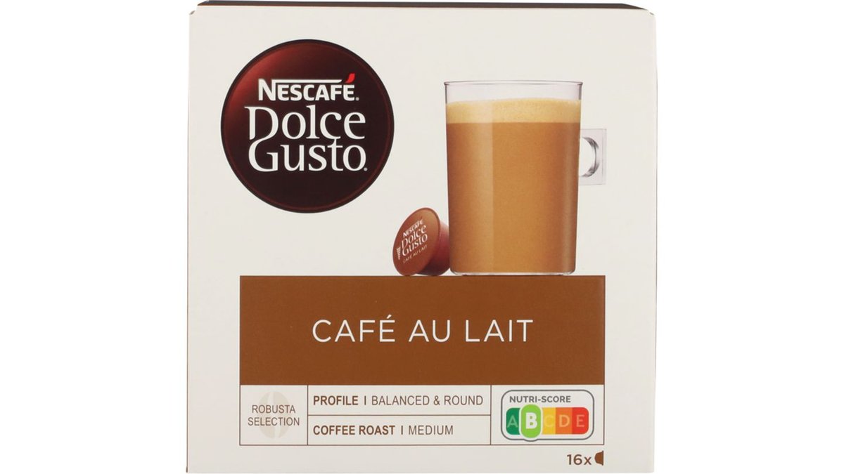 16 stk. Der er ikke nogen bedre måde at starte dagen på for en fan af luftigt mælkeskum. Nyd bare denne lækre morgenkaffe med varmt mælkeskum. Prøv NESCAFÉ® Dolce Gusto® Café au Lait – harmonisk kombination af intens kaffe og cremet mælk i én kaffekapsel. Nydes bedst i et krus på 180 ml.