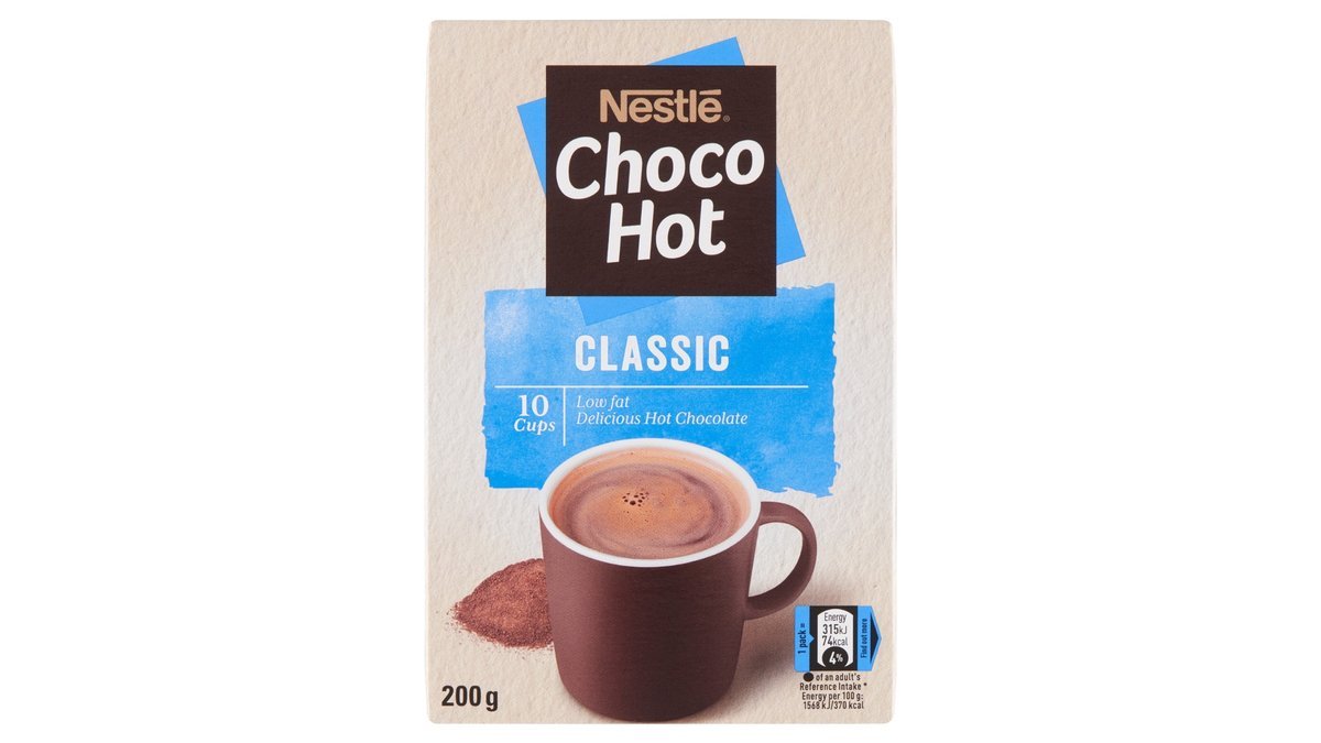 Nestlé Choko Hot Classic er en kakaodrik med en intens smag af kakao. Kakaopulver til varm velsmagende kakao. Tilsæt kun vand og du får en kakaodrik med fyldig kakaosmag og kun 0,3g. fedt.