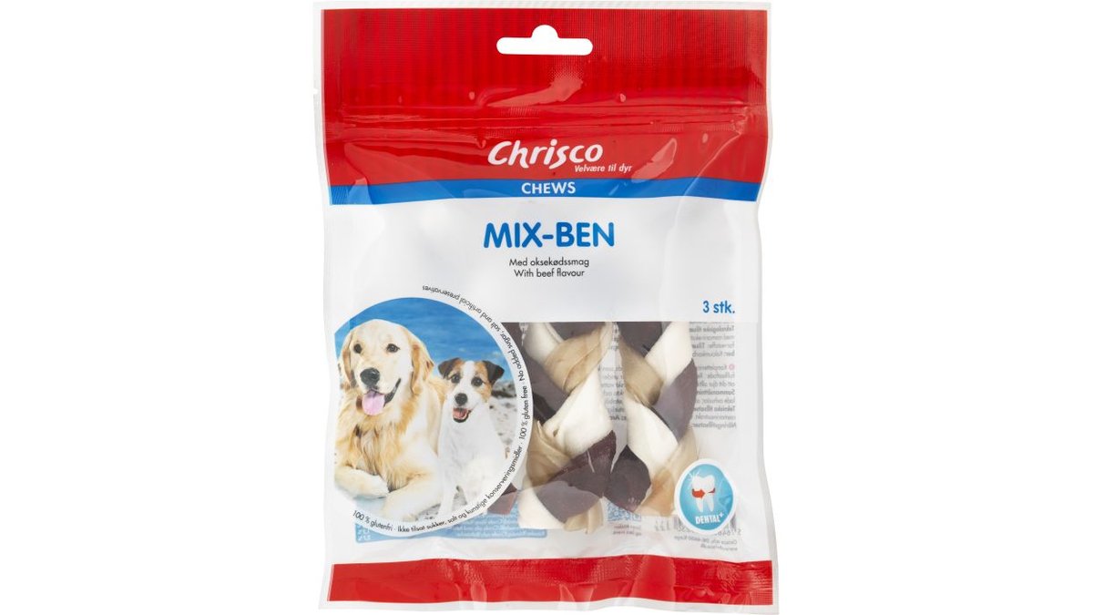 Mix-ben er af høj kvalitet og således et fremragende alternativ til almindelige tyggeben og massive tyggeben. Mix-ben er tilsat oksekødssmag, som gør dem utroligt velsmagende.