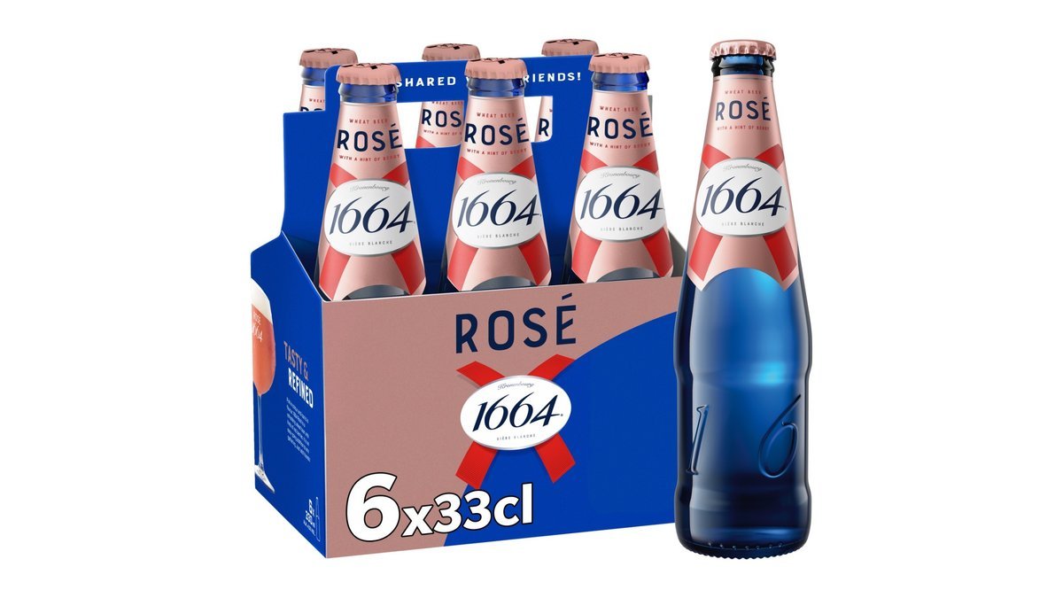 1664 Blanc lanceredes i Frankrig i 2006 og er i dag en af de mest populære hvedeøl på markedet. 1664 Rosé er en forfriskende hvedeøl med frugtige noter af røde bær. Øllen fremstår uklar, rødgylden med hvidt perlende skum. God til krydrede asiatiske retter, fisk, sushi, salater og desserter. Bien sûr!