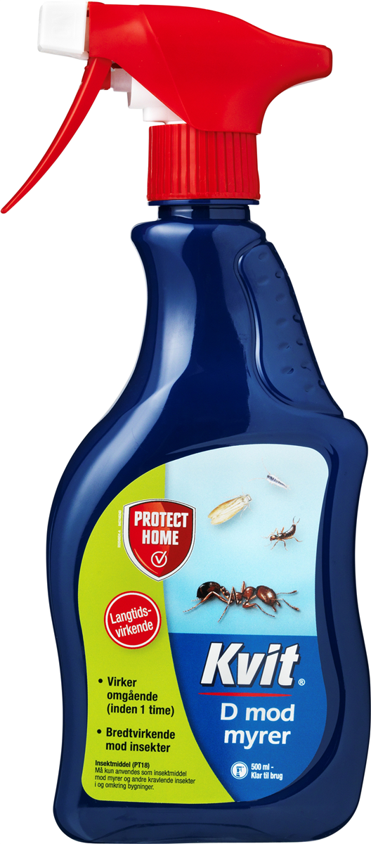 Kvit mod myrer er bredt virkende mod myrer, kakerlakker, lopper, væggelus, sølvfisk, ørentviste og andre krybende/kravlende insekter. Langtidsvirkende.