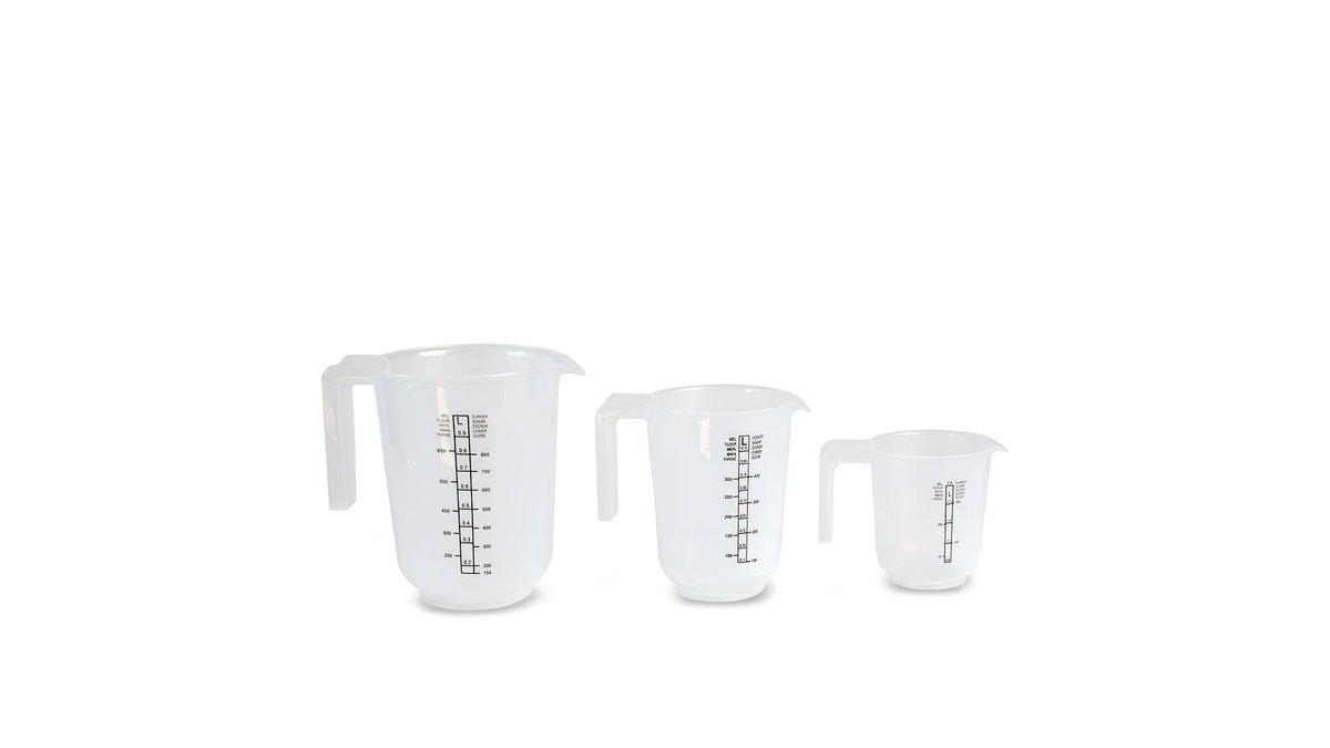Sæt med 3 Målekander, der kan måle ml, dl og liter. Også med streger for mel og sukker.