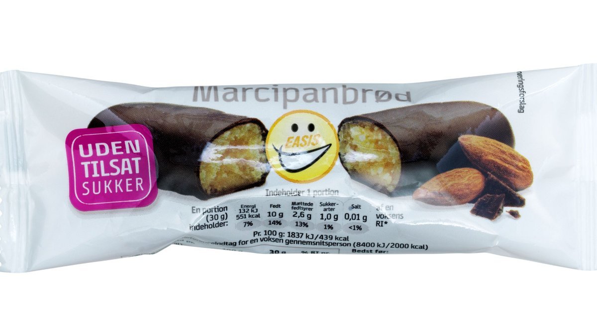 Marcipanbrød overtrukket med chokolade – selvfølgelig uden tilsat sukker