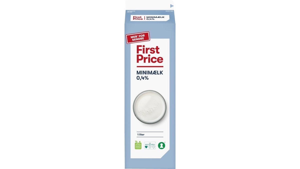 Minimælk indeholder 0,4% og er mærket med det grønne nøglehul, der guider til et sundere valg.