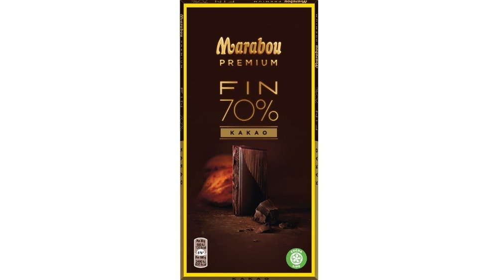 En sprød og tynd mørk chokoladeplade med højt kakaoindhold Marabou Premium chokoladen er produceret af kakaobønner i topkvalitet fra omhyggeligt udvalgte kakaosorter.