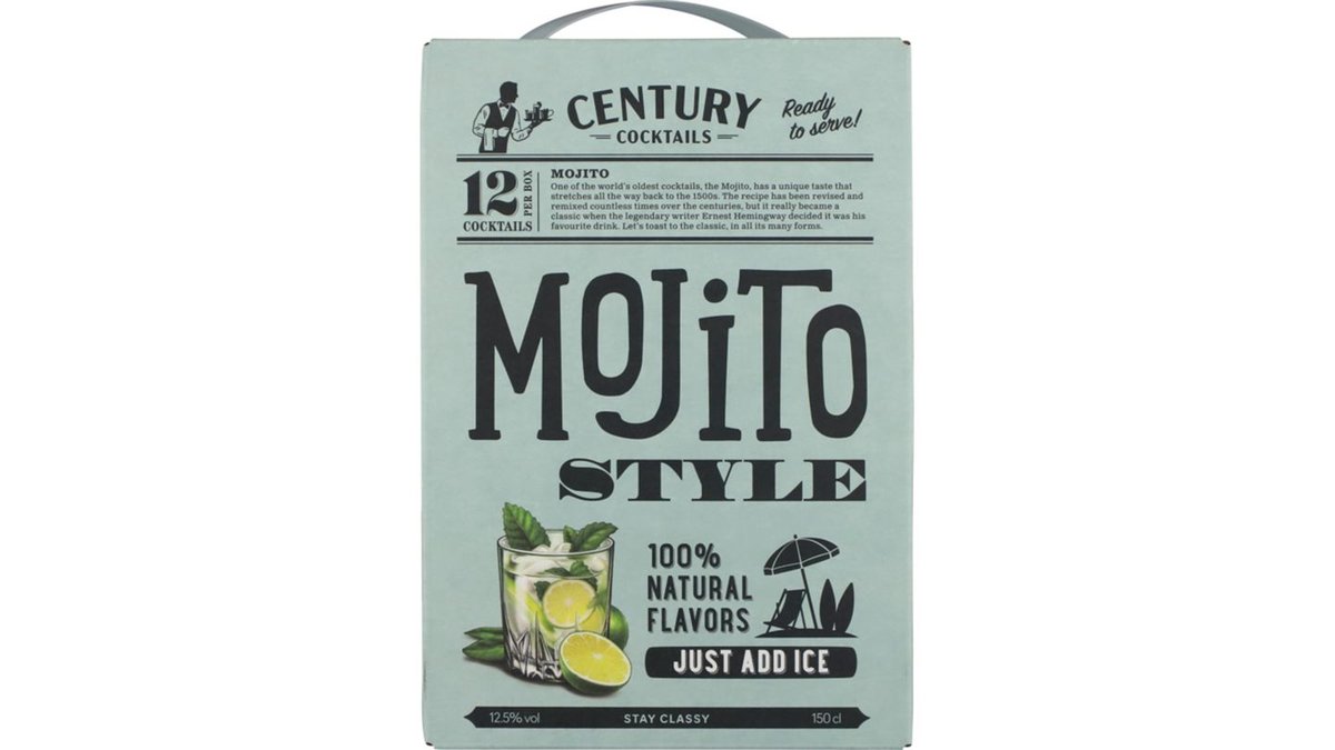 Færdigblandet mojito cocktails i en boks til cirka 12 cocktails. Tilføj kun is, så er der cocktails til en aften med vennerne.