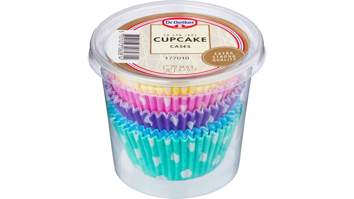 Dr. Oetker Prikkede Muffinforme er lavet i ekstra kraftig kvalitet. Formene fås i 5 festlige farver: Gul, pink, lilla, blå og grøn. Perfekte til fødselsdagen.