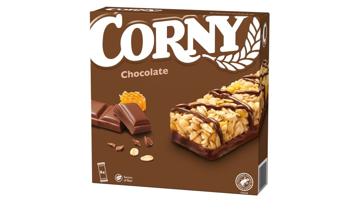 Vi er helt overbeviste om, at man bliver glad af chokolade. Derfor er CORNY Chokolade også vores mest populære variant. En lækker måde at kombinere korn og chokolade på – MUMS! Kommer i en praktisk multipak, der indeholder seks individuelt indpakkede mindre barer. Perfekt til madpakken, kontorskuffen eller tasken.