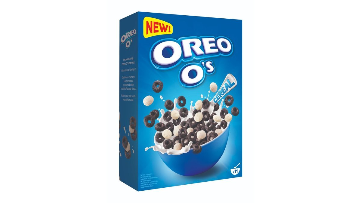 | Ingrediensliste | Mel (66%) (HVEDE(45%), ris (21%)), sukker, fedtfattigt kakaopulver, Oreo kiksekrymmel (2.8%)(HVEDEmel, sukker, rapsolie, fedtfattigt kakaopulver, glukose-fruktosesirup, HVEDEstivelse, hævemiddel(kaliumcarbonater, ammoniumcarbonater, natriumcarbonater), palmeolie, salt, emulgator (SOJAlecithiner), aroma), HVEDEstivelse (2.5%), aromaer, salt, niacin, jern, riboflavin (B2), vitamin B6, thiamin (B1), folsyre, vitamin D, vitamin B12. Kan indeholde spor af NØDDER og MÆLK. |