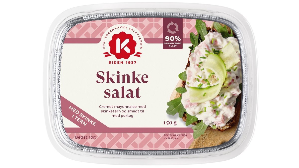 Den klassiske skinkesalat er fyldt med skinke og smagt til med lidt løg og purløg. Smager dejligt på rugbrød eller i en sandwich.