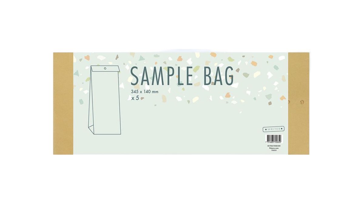 5 stk. Prøveposer i en lille og aflang størrelse. Posen er 345 x 140 mm.