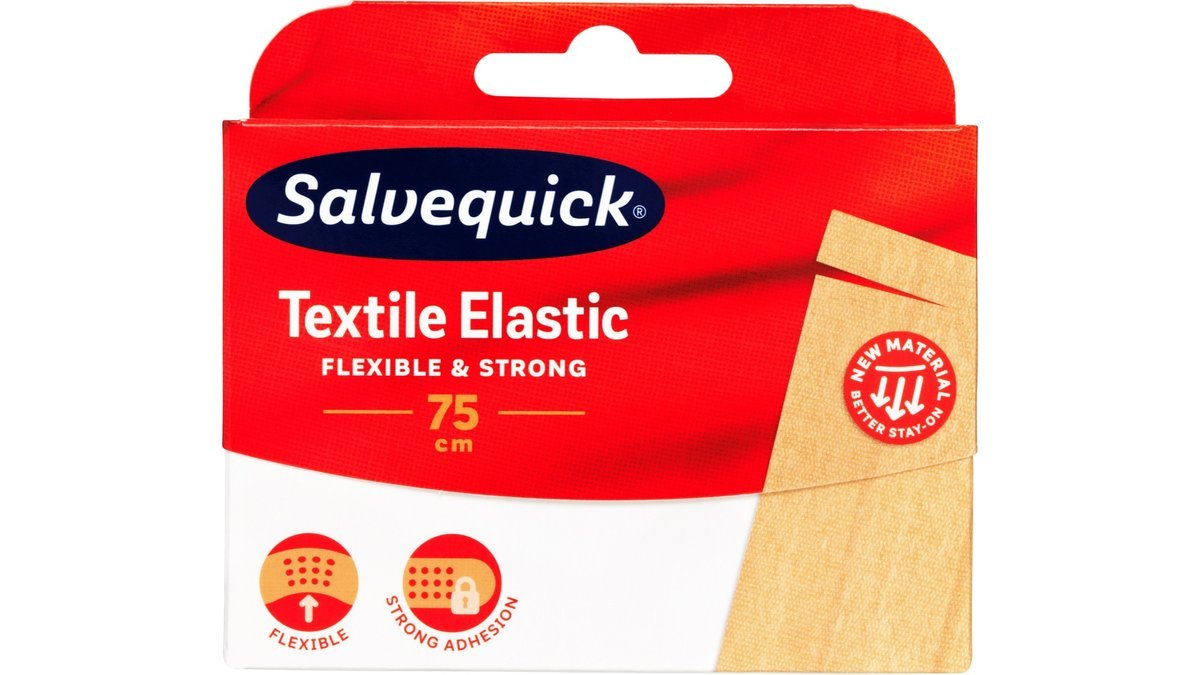 Dette Textil plaster fra Salvequick er et langt stykke plaster, som gør det muligt selv at bestemme størrelsen på plastrene. Plastrene sidder ekstra godt fast og er elastiske. De er derfor specielt gode til eksempelvis albuer, knoer og knæ.