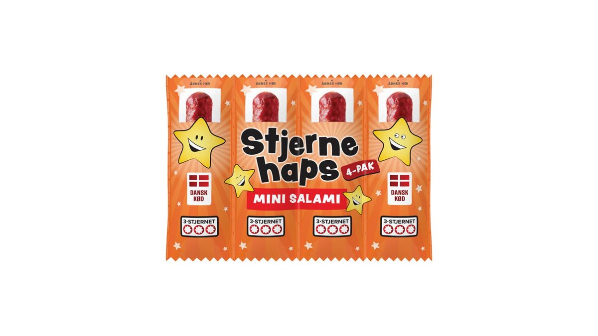 Stjernehaps Mini Salami fra 3-stjernet er en børnevenlig salami med en let røget smag. Mini Salami er krydret med milde krydderier, og kommer i en praktisk indpakning, som gør dem nemme at have med i madpakken eller på farten. I nem 4pak, så du har til flere dage.