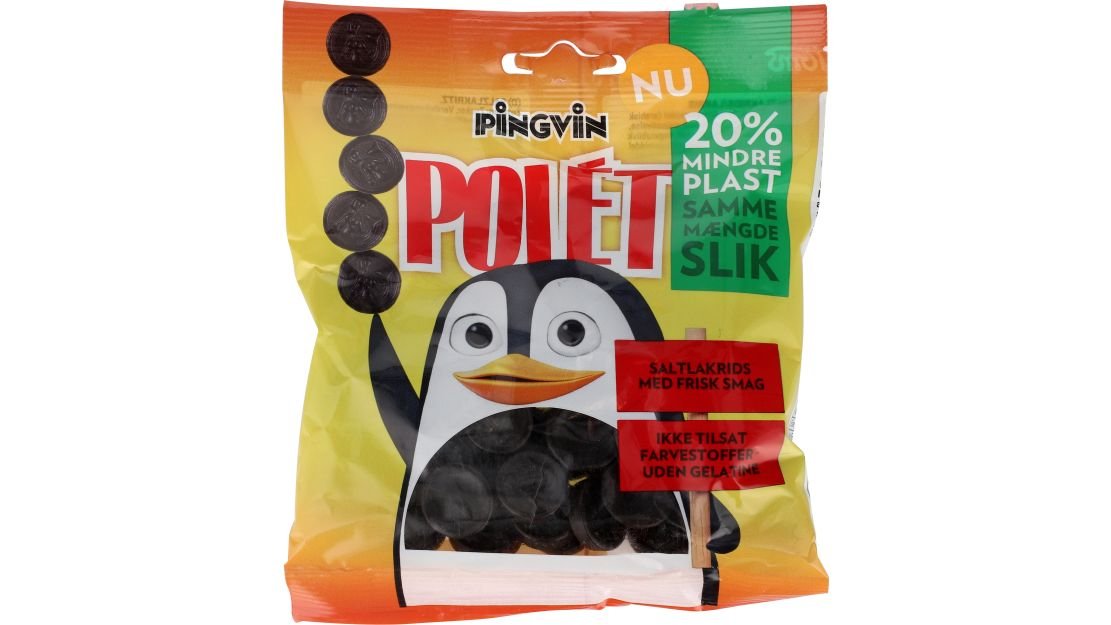 Pingvin Poletter er runde, saltlakridser med en afrundet og mild lakridssmag fra Toms.