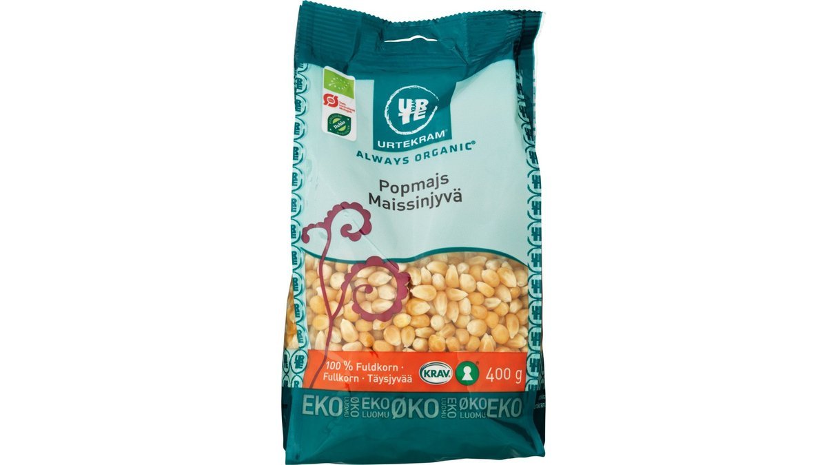 Økologiske popmajs fra Urtekram er særligt eget til popning i gryde eller over bål. Popcorn på gammeldags manér.