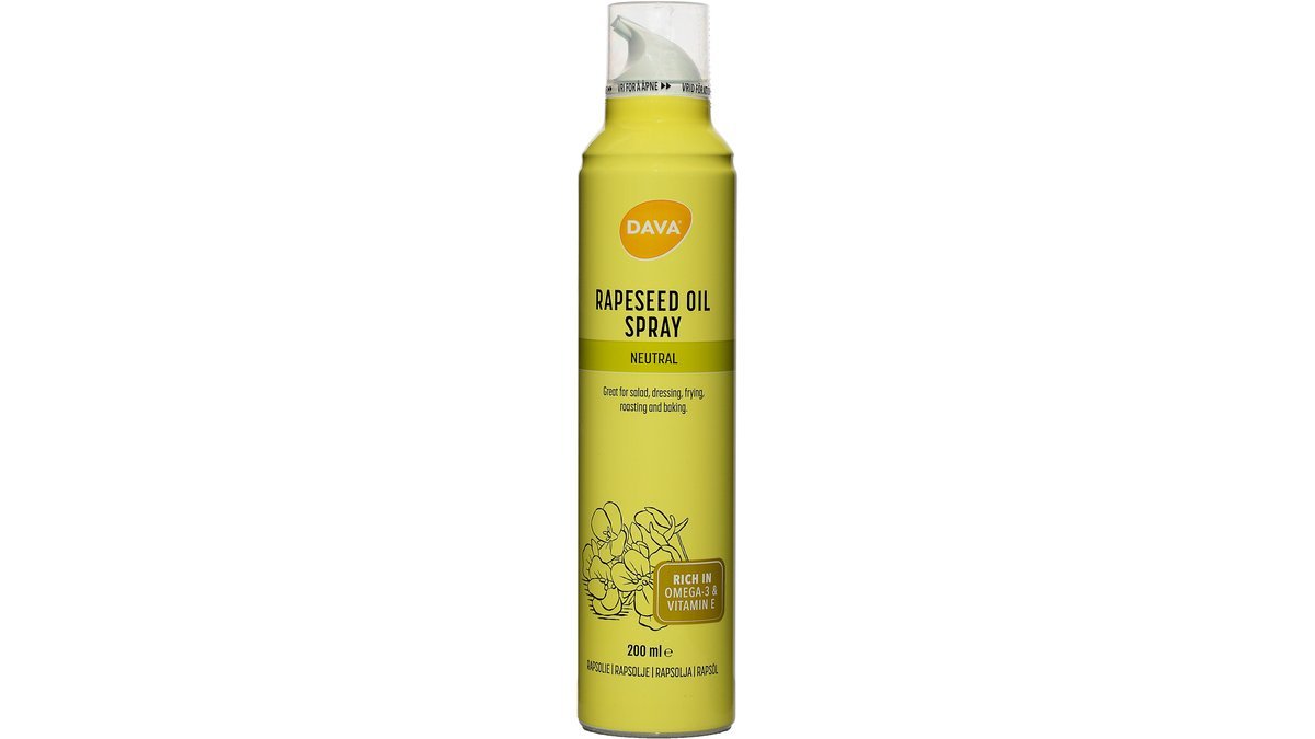 Neutral rapsoliespray fra DAVA. God til salat, pasta, dressing, stegning og bagning.