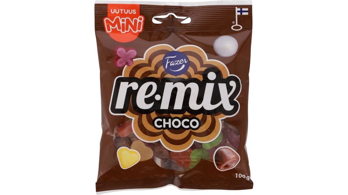 Remix Mini Choco er en blanding af chokoladelinser, dragéer med toffeesmag og lækre frugtbolsjer. Nyd en pose Remix Mini på farten eller få et sødt lille øjeblik for dig selv.