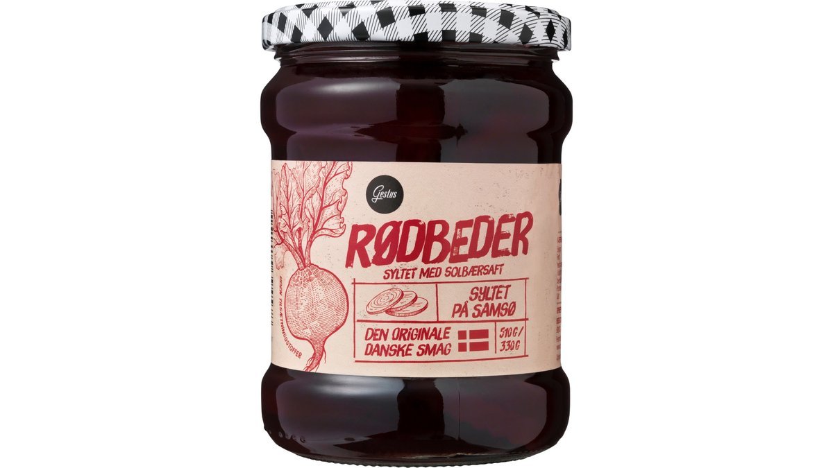 Rødbeder syltet med solbærsaft fra Gestus. Den originale danske smag – syltet på Samsø.