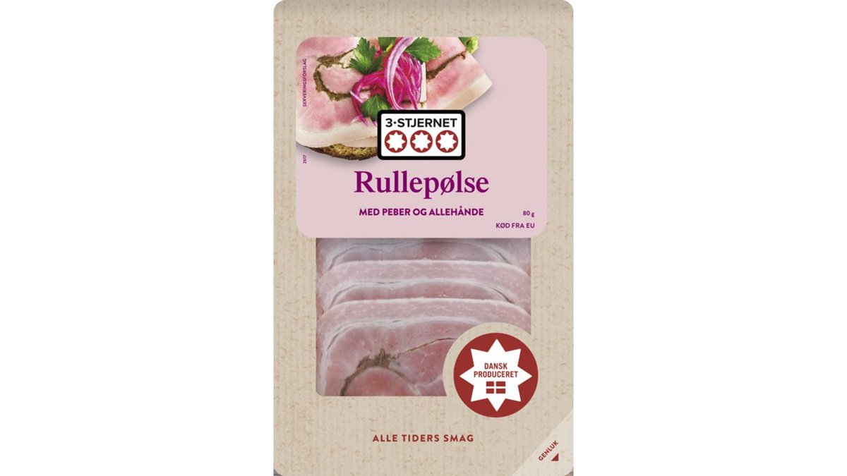 Pålægsserien leveres i en emballage med genluk. 3-Stjernet Rullepølse er perfekt til et stykke rugbrød både til frokost og aftensmåltidet.