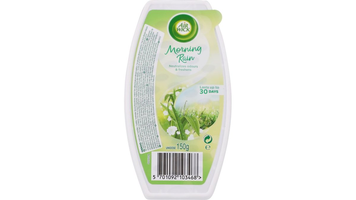 Der er ikke noget så beroligende som duften af en blid regnbyge om morgenen – og nu kan du nyde den friske aroma, når du har lyst, med vores Air Wick Gel Block. Spred en klar, holdbar duft, når du har gæster, eller brug den til daglig for at eliminere dårlig lugt og friske hjemmet op. Holder i op til 30 dage.