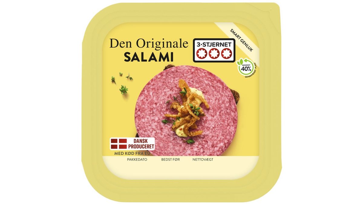 3-Stjernet Den Originale Salami har siden starten for over 50 år siden været grundstammen i 3-Stjernet. Denne danske specialitet produceres i dag nøjagtig efter de samme grundprincipper som første gang for over 50 år siden. For at få den fornemme salte smag frem i pølsen, som er så karakteristisk for den originale 3-Stjernede salami, lagesaltes pølserne i op til to uger førend de røges og tørres. Det tager derfor op til seks uger, før den rette konsistens og smag opnås, og pølsen kan godkendes. Det er med denne specielle saltlagning sammen med en udsøgt blanding af hvid peber og hvidløg, at den 3-Stjernede Salami får sin helt egen unikke smag. Perfekt til madpakken og frokostbordet. Den er produceret i Danmark.