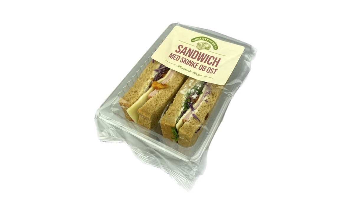 Sandwich med skinke, ost og sennepsdressing fra Quality Kitchen. Klar til at spise. Nemt og lækkert – velbekomme.