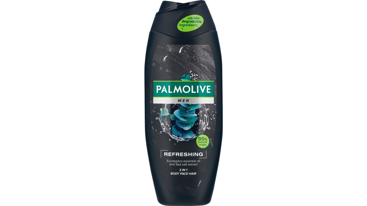 Nyd en regenererende brusebadsoplevelse, mens du genopretter din kontakt med naturen med Palmolive Men Refreshing 3-in-1 Shower Gel. Den er perfekt til krop, ansigt og hår og indeholder æterisk olie af eukalyptus og havsaltekstrakt. Vores showergel til mænd har en 95% biologisk nedbrydelig formel og ingredienser af 95% naturlig oprindelse*. Den blide formel er dermatologisk testet. Plastbeholder lavet af genanvendelig plastik.