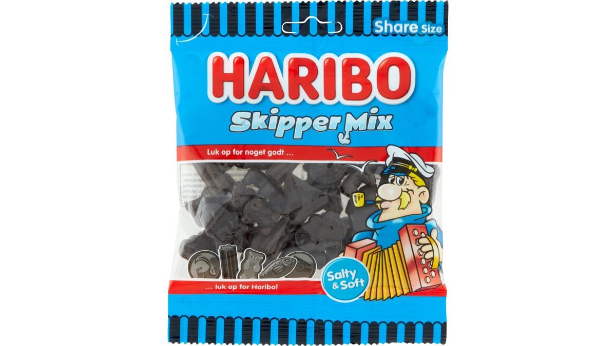 Sæt kursen mod lækker lakrids! Engang sejlede en kaptajn over verdenshavene og mødte en masse forskellige kulturer. Han gav inspiration til Skipper Mix, som i dag er en ægte HARIBO-klassiker. Perfekt blanding af den bedste HARIBO-saltlakrids, fra mild til stærk salmiak, og fra de bløde til de lidt sejere stykker. Ohøj, lakridselskere!