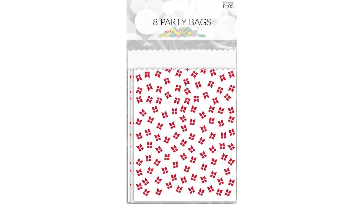 8 stk. Slikposer med flag fra Pictura. Perfekt til uddeling af slikposer til fødselsdagsfesten eller i skolen.