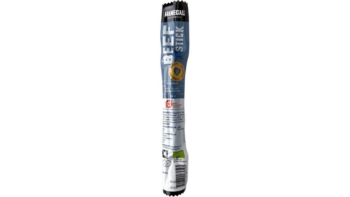 Hanegal Snackpølse af oksekød – Økologisk kvalitet i praktisk portionsformat. Mild og velsmagende snackpølse lavet af økologisk oksekød og krydret med paprika, koriander og peber for en afrundet smagsprofil. Røget over bøgeflis, hvilket tilfører en diskret røgsmag og ekstra dybde. Leveres enkeltvist indpakket – ideel til madpakker, kantinesortimenter, caféer eller som to-go snack. Kan også skæres i mindre stykker og indgå i tapas, salatbarer eller mødeforplejning, hvor både smag og præsentation tæller.