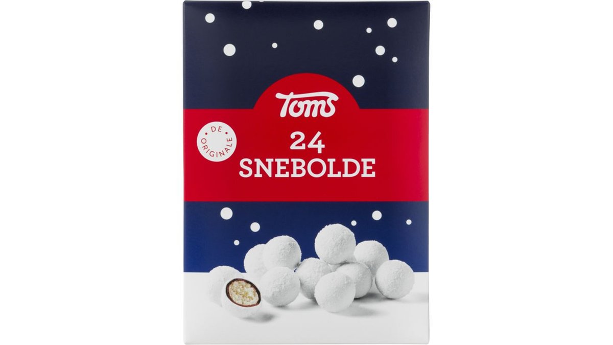 De velkendte snebolde i pose fra Toms. Sneboldene er lavet af marcipan med mørk chokolade og sukkerdragée (21%). En perfekt julesnack til ethvert julebord.
